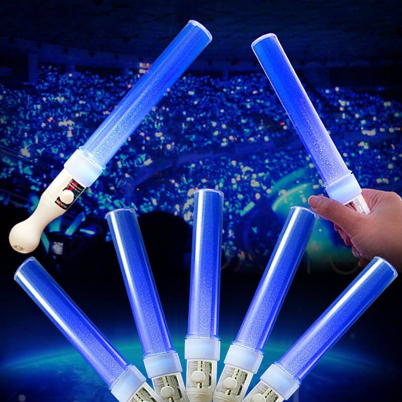 Trong đêm tối Gậy led cổ vũ kim tuyến xanh dương 25cm càng trở nên lung linh và nổi bật, thu hút mọi ánh nhìn
