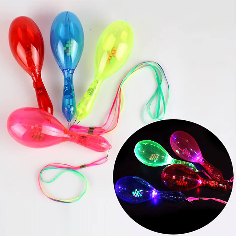 Lục lạc nhựa phát sáng có thiết kế vừa vặn tay cầm, được đúc khuôn từ chất liệu nhựa PS trong suốt, đa dạng màu sắc. Tính năng phát sáng led chuyển màu đẹp lung linh, và khi cầm lắc nhẹ tạo âm thanh vui nhộn rất thích hợp dùng làm món đồ chơi âm nhạc dành cho bé yêu nhà bạn. Sản phẩm này còn được xem là dòng dụng cụ cổ vũ, dụng cụ phát sáng led chuyên dùng trong các sự kiện, trò chơi, phòng karaoke để tạo không khí sôi động hơn cho tiệc tùng, hội nghị....