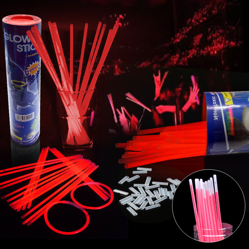 Que bẻ phát sáng dạ quang đỏ có màu sắc rực rỡ, chuyên dùng để trang trí cho các sự kiện, lễ hội, tiệc tùng, ca nhạc.... thêm phần lung linh và nổi bật. Với thiết kế dạng que nhựa thẳng chỉ cần bẻ cong để tạo ánh sáng dạ quang màu đỏ tuyệt đẹp, đặc biệt 1 ống que bao gồm 100 cây que dạ quang + 100 đầu nối tròn giúp bạn biến tấu được nhiều hình ngộ nghĩnh và ấn tượng hơn. Sử dụng thế nào là tùy ở bạn vì bạn chính là nhà sáng tạo tài ba!!!