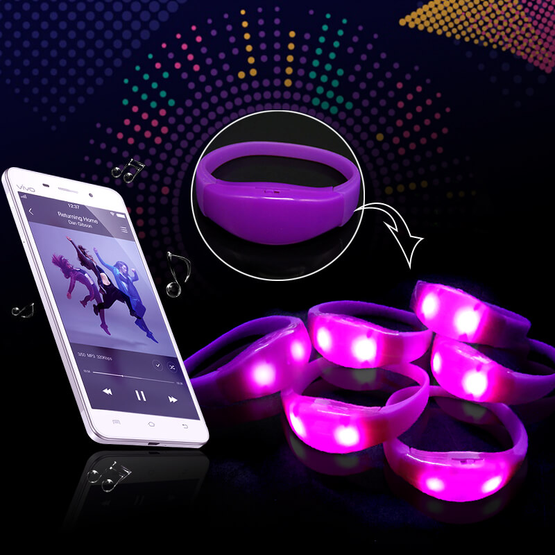 Vòng đeo tay cảm ứng màu tím hồng là sản phẩm chuyên dùng cho các sự kiện âm nhạc, gameshow, quán bar, phòng karaoke.... Với tính năng cảm ứng âm thanh phát ánh sáng led chớp sáng theo điệu nhạc, tạo hiệu ứng ánh sáng đẹp lung linh hòa cùng giai điệu âm nhạc giúp tăng không khí sôi động và hào hứng hơn.